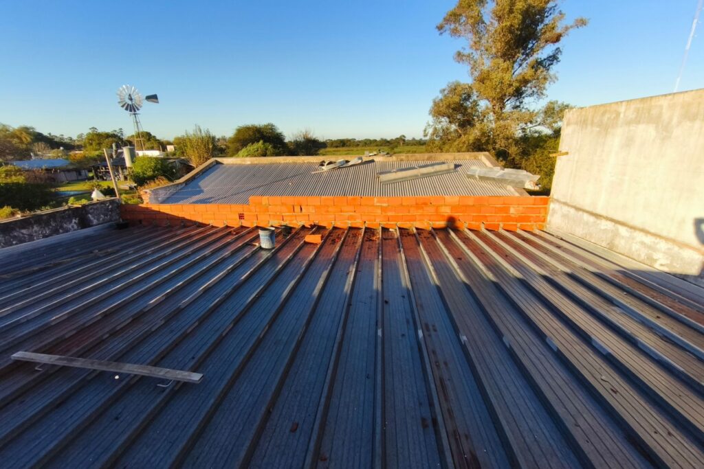 Entre los trabajos previstos, se incluye la modificación de la pendiente del techo, la construcción de un sobretecho con estructura metálica y chapa galvanizada, la reposición de canaletas internas, y la incorporación de bajadas pluviales adicionales, además de arreglos eléctricos y cielorrasos dañados.