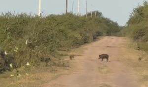 Invasión de jabalíes: filman una familia completa en un camino vecinal de Santa Elena