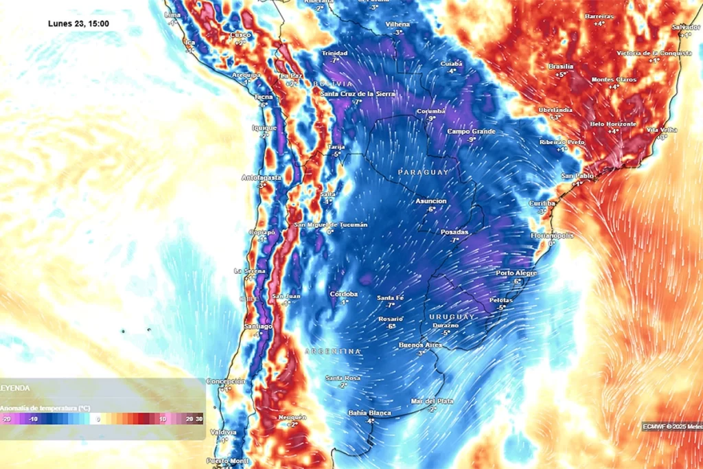 Incluso países vecinos como Uruguay, el sur de Paraguay y el sur de Brasil también sentirán el embate del frío polar durante la próxima semana.